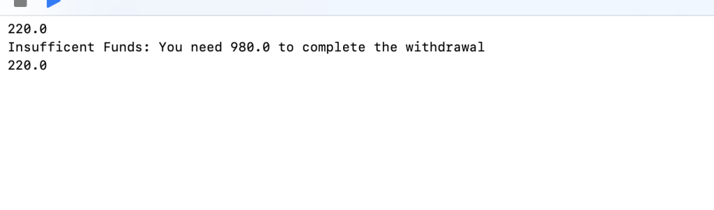 You might be thinking to yourself, if we’re going to put a print statement in the catch then what is the purpose of writing all of this code when we could have just done it in the withdraw function. I understand your concern because I had the same thoughts until I learned that do-try-catch is cleaner and allows you to provide UI feedback in the catch block.